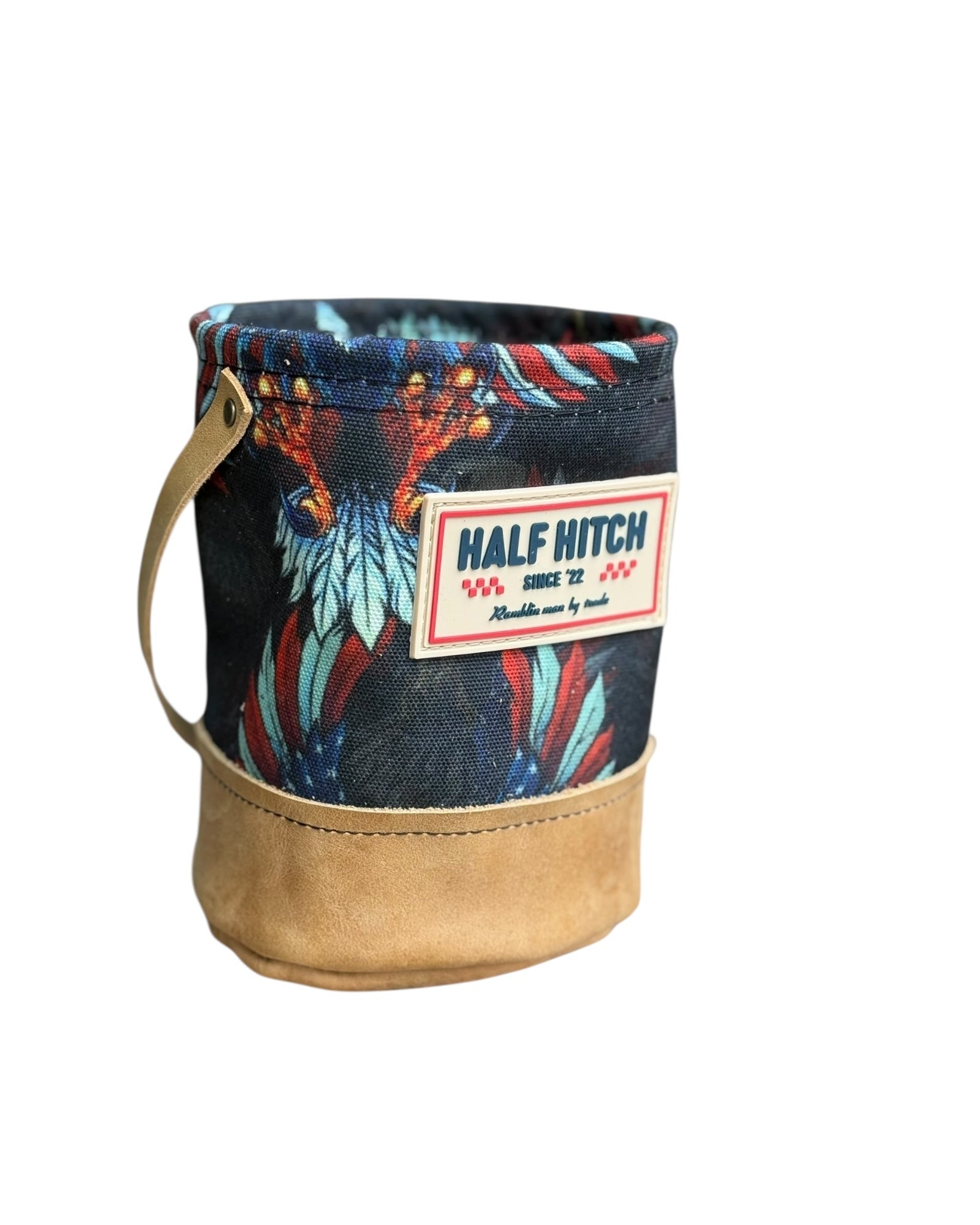These are one-of-a-kind Mini Grunt Bags with custom patterns! We have handcrafted these with durable fabric and top-quality leather to look snazzy hanging from your rearview!